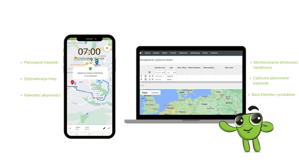 - Rozwój i skalowanie przedsiębiorstwa: Dzięki funkcjom monitorowania pracy handlowców, optymalizacji tras wizyt oraz planowaniu zadań, PocketField umożliwia firmom skuteczne zarządzanie swoim zespołem handlowym nawet w przypadku szybkiego wzrostu działalności. To pozwala na płynne skalowanie przedsiębiorstwa bez utraty kontroli nad procesami handlowymi.